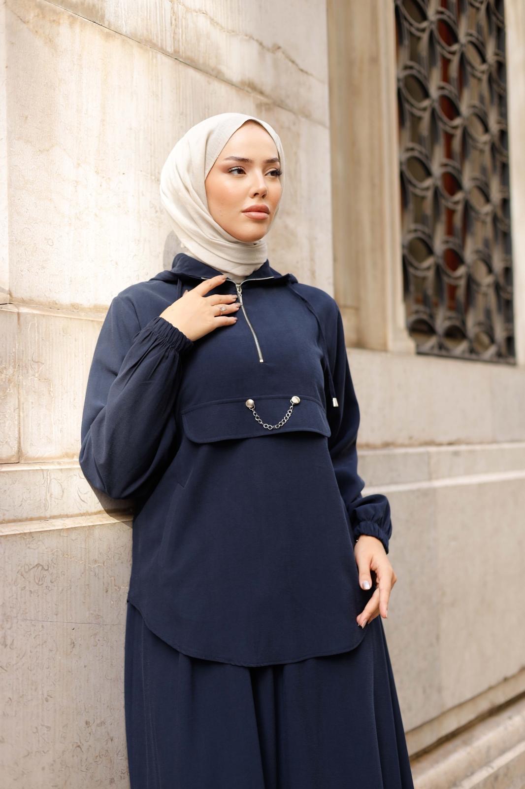 Lacivert Tensel Kapüşonlu Etekli Takım